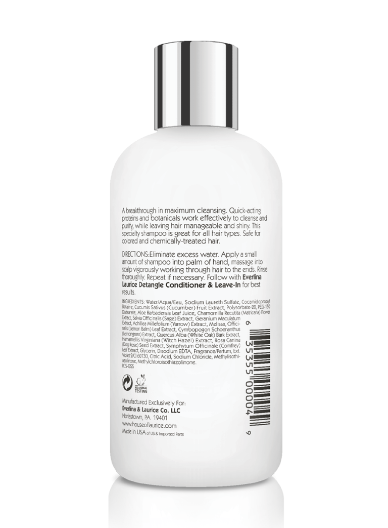 DESCRIPTION: A breakthrough in maximum cleansing. Quick-acting proteins and botanicals work effectively to cleanse and purify, while leaving hair manageable and shiny. This specialty shampoo is great for all hair types. Safe for colored and chemically-treated hair.